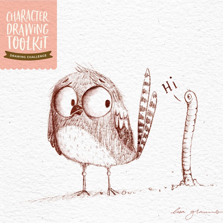 Little birdie and worm: lets be friends! Each week I’ll be creating a character using one of my Character Drawing Toolkits.