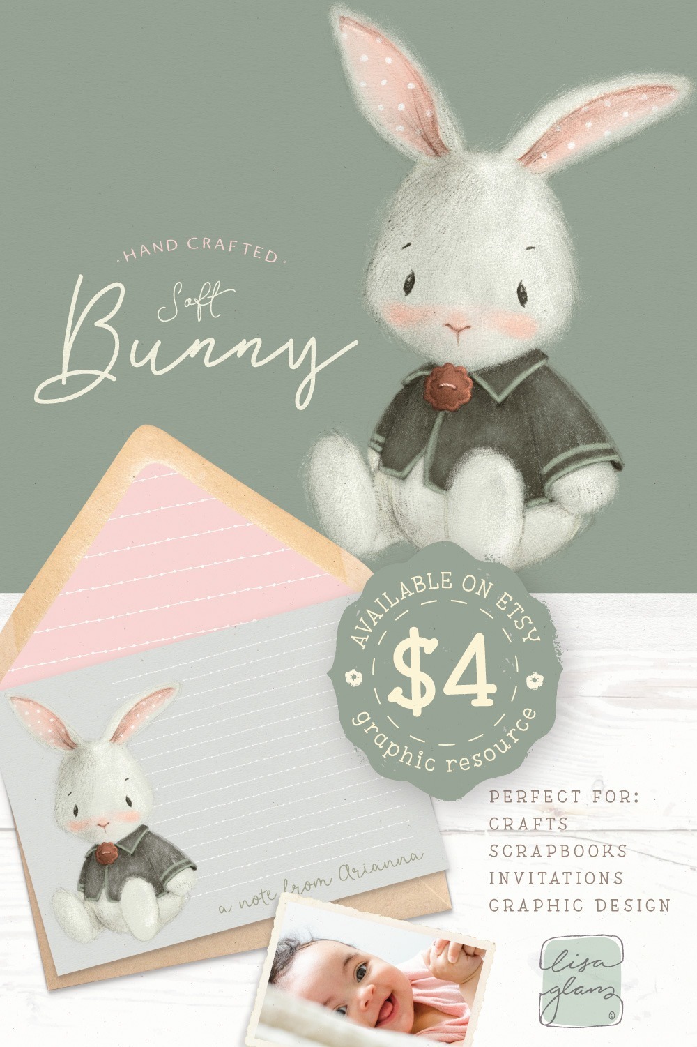 My plush bunny rabbit can add a gentle touch to your craft and scrapbooking projects.