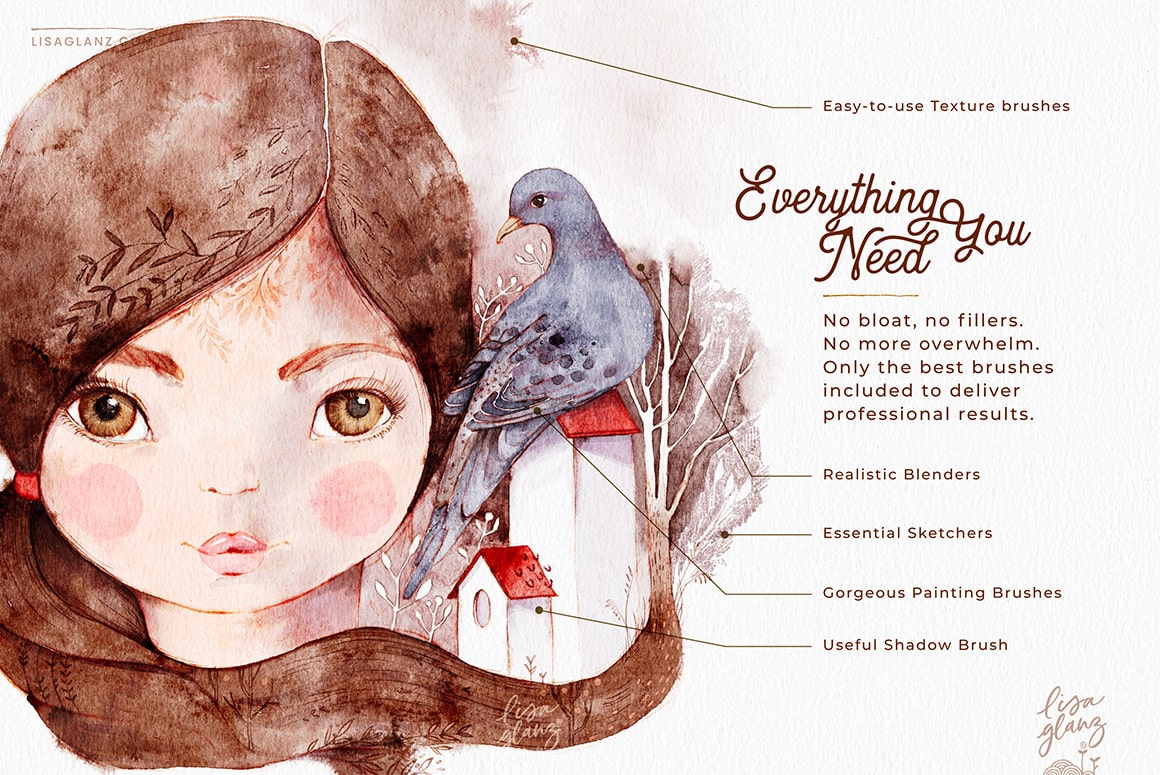 These brushes I play with daily. Lisa they’re so beautiful!! I can’t thank you enough I watch you on skill share as well. I can’t wait to own all your brushes. Such a joy to be able to work with. Thank you. Both of your sets that I have are my absolute favorite.